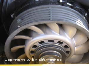 im Bild zu sehen, der Antrieb des Lüfterrades mit dem die