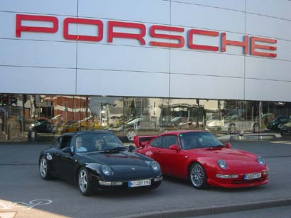 Hier am Porsche-Zentrum des Werkes, wurden von Passanten nicht nur neue Wagen per Foto festgehalten, sondern die Generation der luftgekühlten 911er in Form der Typen, 993 RS - Clubsport-Look sowie 993 Targa wurden sehr gerne auf Photopapier gebannt. |