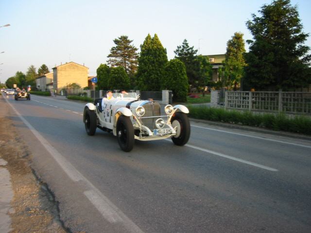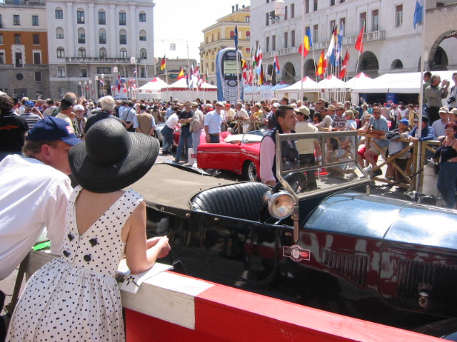Punkt 20.15 Uhr. Das erste Auto rollt von der Startrampe auf der Viale Venezia. Eine perfekt organisierte Maschinerie beginnt zu arbeiten. Denn ein Feld von über 350 Oldtimern muss über 1600 Kilometer dirigiert werden. Zweieinhalb Tage lang haben die Renn-Klassiker Vorfahrt. Rund zwei Stunden dauert es, bis das letzte Auto Brescia verlassen hat. Entlang der Strecke ist auch schon in den ersten Stunden der Mille die Stimmung groß. Bis tief in die Nacht sind die Zuschauer auf den Beinen. Wir beobachteten die Fahrzeuge in Höhe Mantova an einem Kreisel, wo das Tempo der Fahrzeuge etwas gedrosselt werden musste. Somit war ein detaillierteres bestaunen der Teilnehmer möglich.