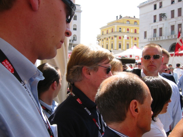 Der Innenbereich des Abnahmeplatzes ist allerdings für die Öffentlichkeit gesperrt. Nur Fahrer, Teammitglieder und Medienvertreter erhalten Zutritt. Doch auch so ist der Raum recht eng. Also nicht enttäuscht sein: so spannend ist die Abnahme auch wieder nicht. Wem es nicht um das Sehen und Gesehenwerden geht, sucht sich lieber ein ruhiges Plätzchen in der Stadt, wo man auch in aller Ruhe einen Espresso genießen kann.